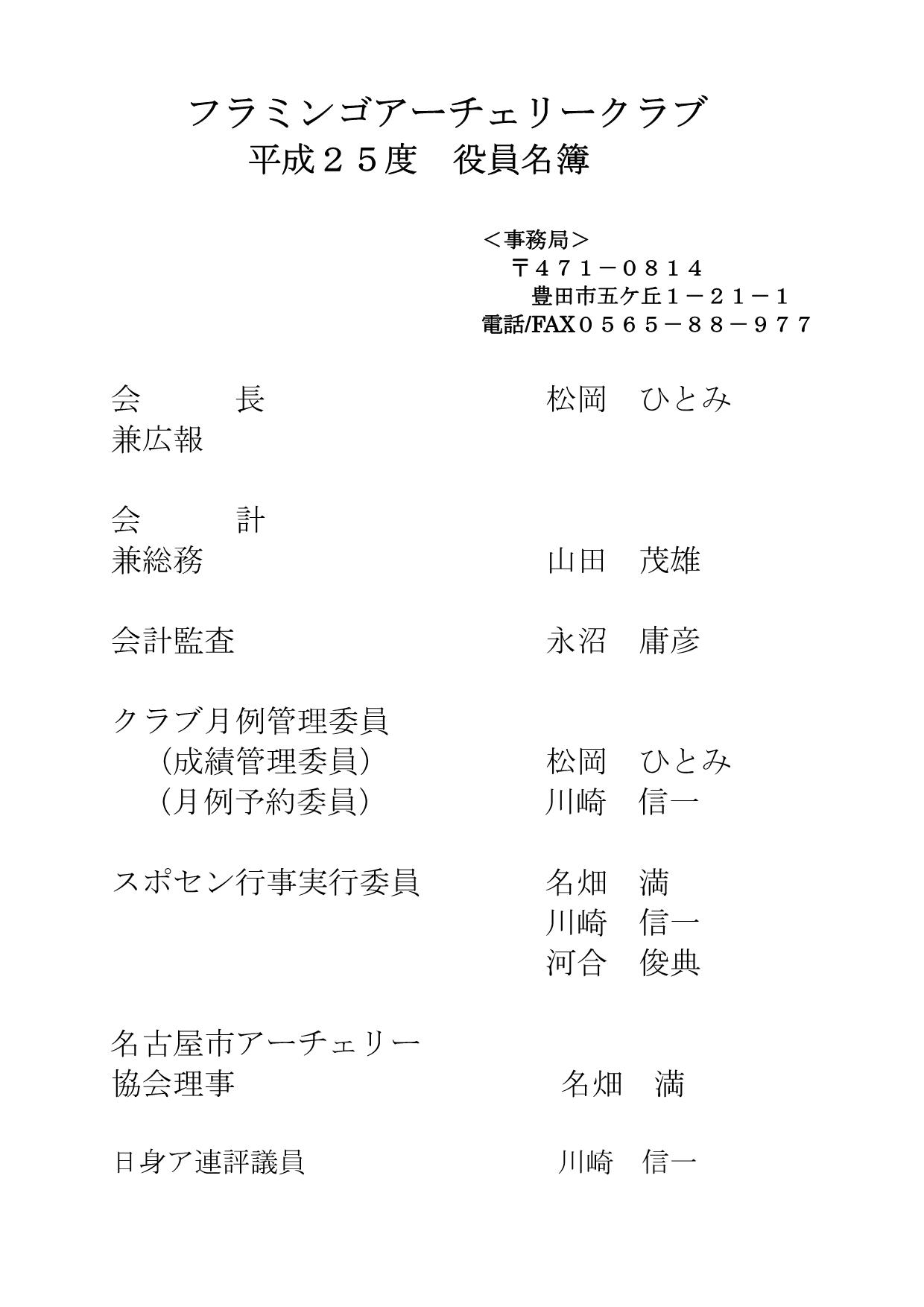 - 平成25年度フラミンゴアーチェリークラブ役員名簿