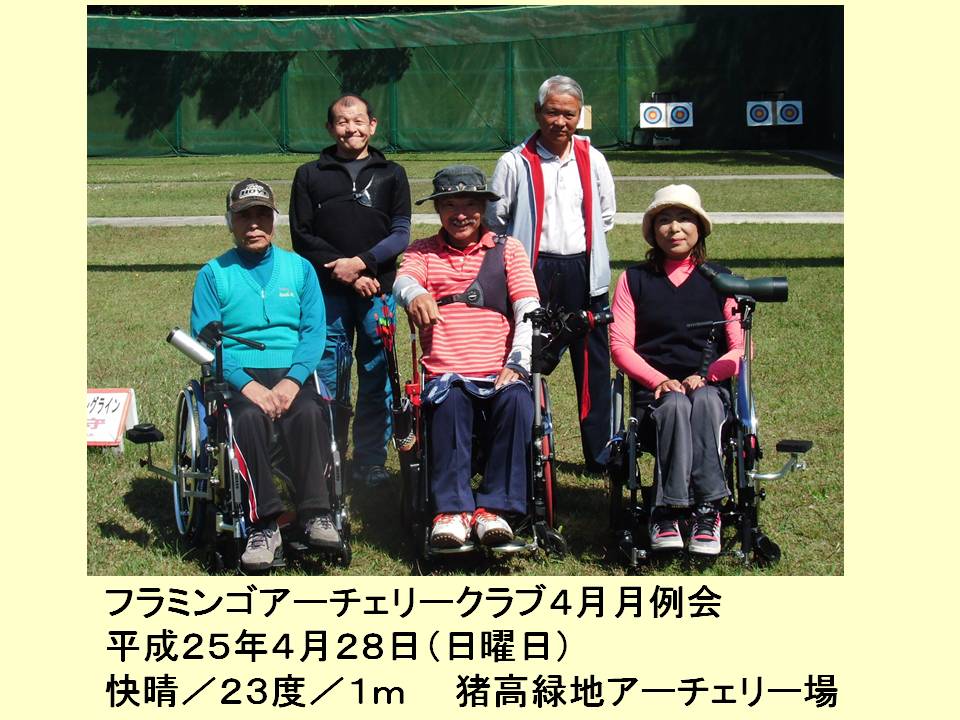- ・平成25年度初の50m/30mの月例会でした。 ・開幕戦で参加者が5名でしたが各アーチヤー大健闘で好成績で今シーズンが楽しみになりました。