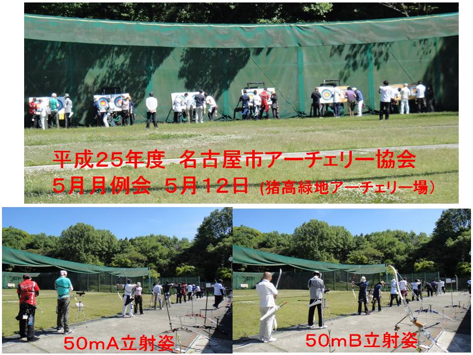 - 名古屋市アーチェリー協会5月月例会(猪高緑地アーチェリー場) 平成25年5月12日(日曜日) 快晴/28度/2m 参加者24名 RC部門18名/CP部門6名(クラブ員1名)