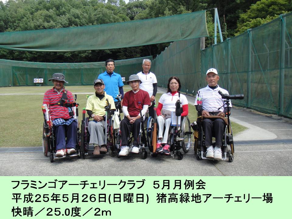- フラミンゴアーチェリークラブ5月月例会 平成25年5月26日(日曜日) 猪高緑地アーチェリー場 快晴/25.0度/2m ・今月から会員1名・賛助会員1名が新規登録されました。 ・にぎやかで楽しい月例会が更にアップとなります。 ・今日の参加者はRC1名:CP6名でしたがRCの参加者が中々増えません-----。