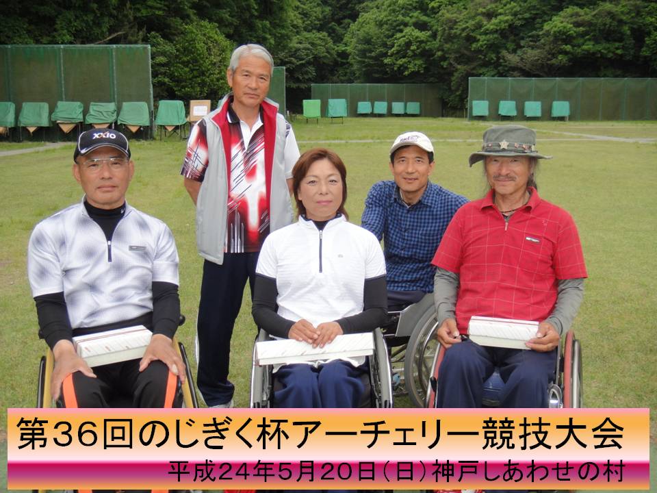 - 第36回のじぎく杯アーチェリー競技大会 平成24年5月20日(日曜日) しあわせの村アーチェリーレンジ(兵庫県神戸市) 参加者47名(クラブ員5名) 男子シングルRC部門2名/CP部門2名 女子シングルCP部門1名 天候に恵まれ気持ち良いアーチェリー大会日和でした。 女子シングルの松岡ひとみさんが1310点の自己新記録達成しました。