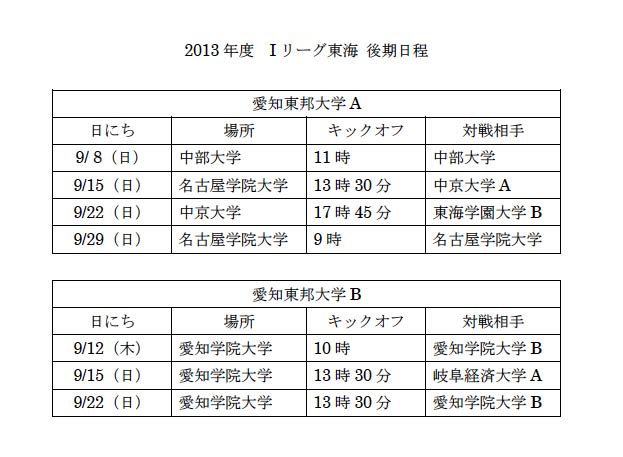 - Iリーグ東海 後期日程