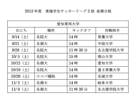 - 東海学生サッカーリーグ2部 後期日程