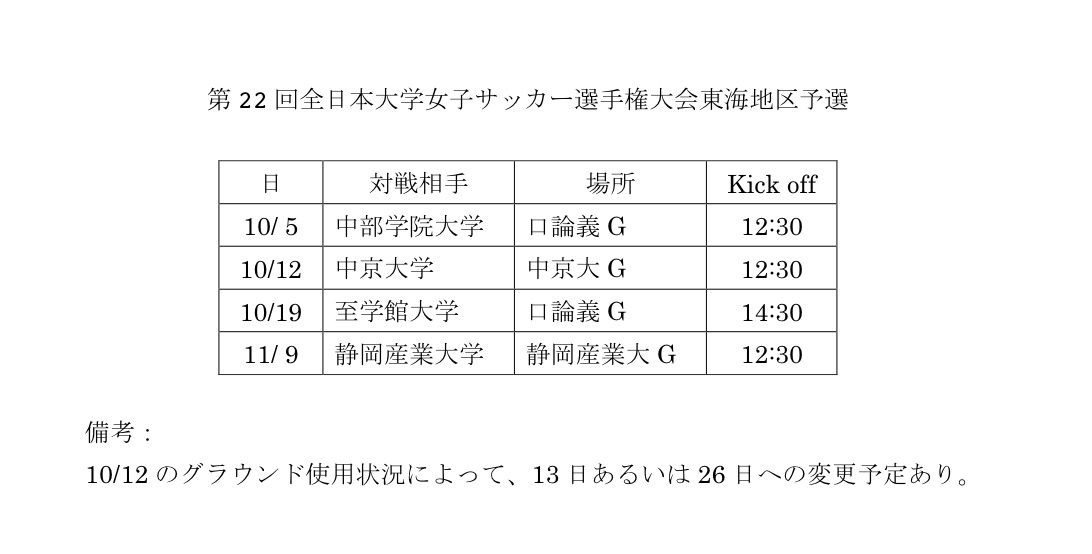 - 第22回全日本大学女子サッカー選手権大会東海地区予選