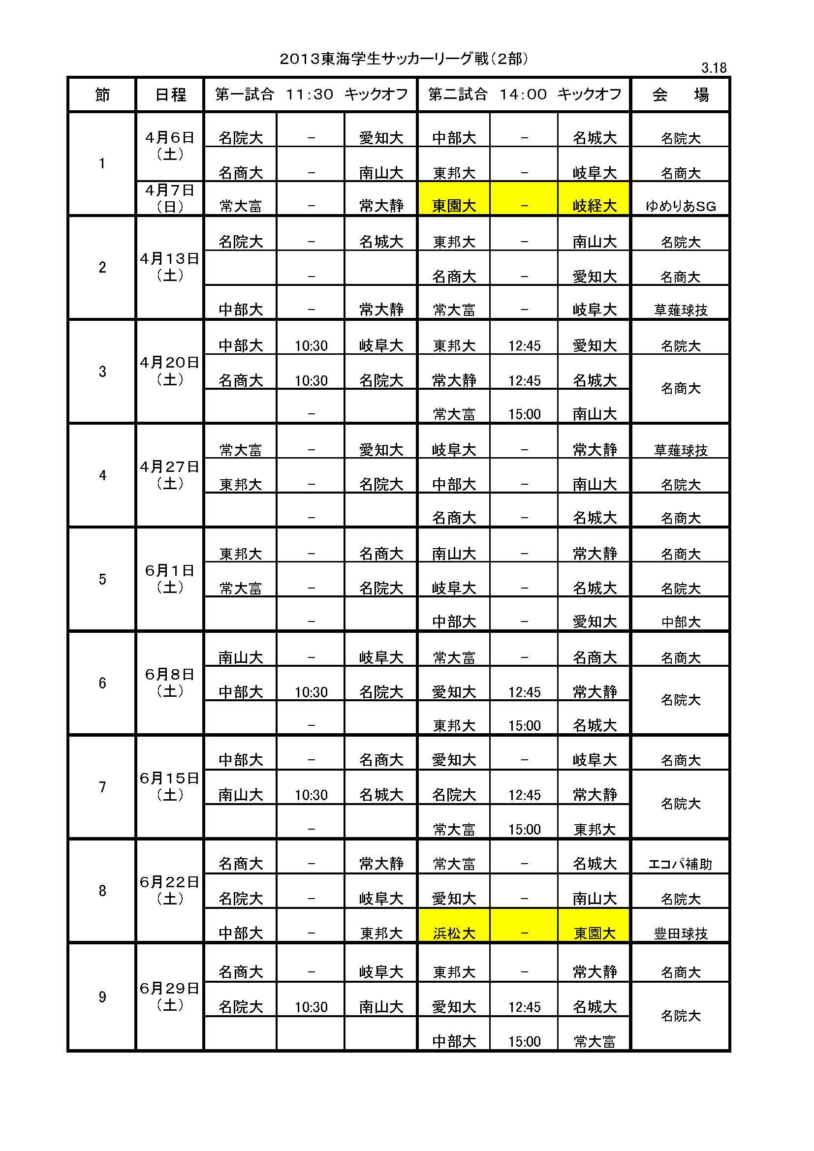 - 東海学生リーグ2部スケジュール