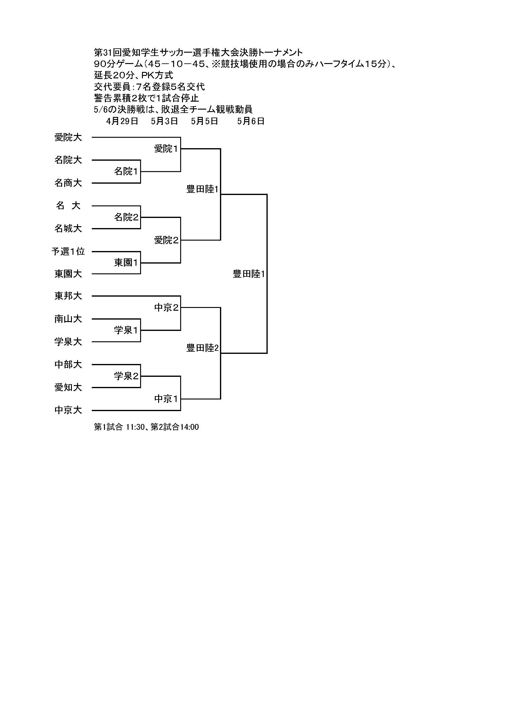 - 第31回愛知学生サッカー選手権大会のトーナメントが発表されました。 http://www.tokai-soccer.gr.jp/13DATA/AICHI/CS/schedule.pdf